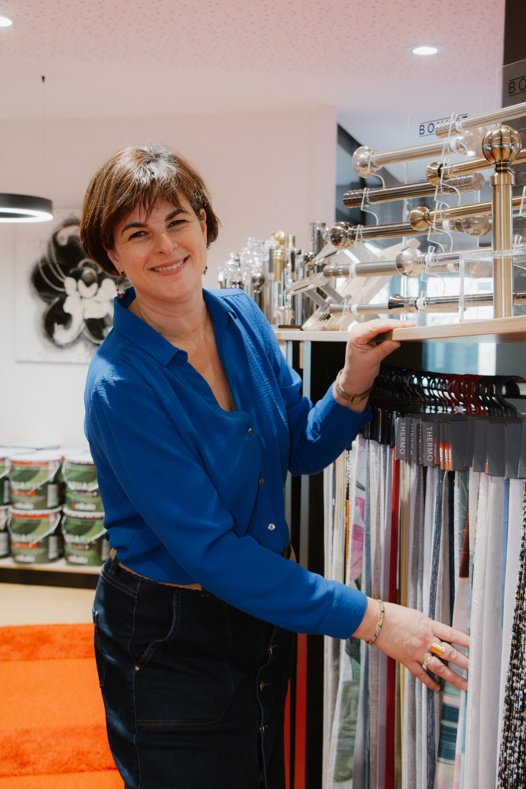 Angélique vous accueille en showroom pour vous conseiller dans le choix de vos peintures, revêtements et textiles. Elle prend le temps de comprendre votre projet, vos goûts et vos contraintes pour vous orienter vers les meilleures solutions.